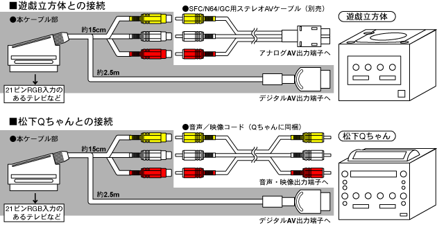 | 備考 | ケーブル全長約2.5m/別途「SFC/N64/GC用ステレオAVケーブル」(Qの場合「音声/映像コード」)が必要