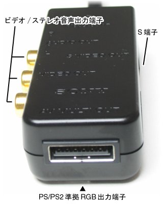 | 出力 | ミニDIN4ピン メス(S端子) RCAピンジャック(ビデオ出力・ステレオ音声出力) 12ピンAV MULTI OUT(PS/PS2のAV端子互換) |