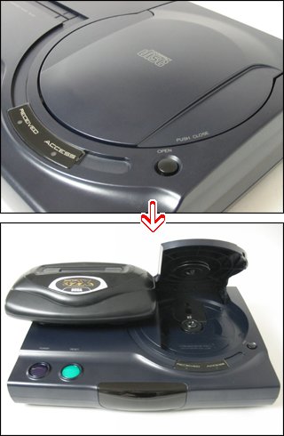 トレイカバーを交換することで、32Xが引っかかっている部分は固定となり、一部のカバーだけが無理なく開くイカス仕様になります。